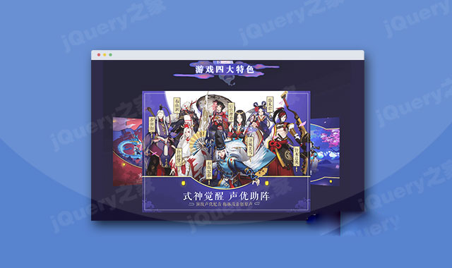 这是一款高仿阴阳师官网的jquery轮播图插件。该轮播图为无限轮播插件,轮播方式为横向滚动(仅支持此方式)。由于本插件使用了大量CSS3属性,对于低版本浏览器(如ie9以下版本等不支持CSS3属性的浏览器)不兼容。