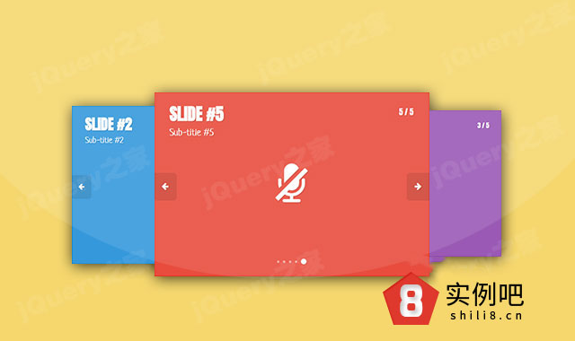 这是一款基于json数据的动态jquery轮播图插件。该jquery轮播图插件模仿Facebook的轮播图UI,并通过json文件来动态获取轮播图中图片和描述信息的数据,来制作漂亮的多卡片轮播效果。