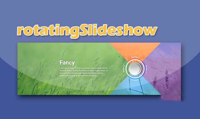 jQuery.rotatingSlideshow是一款带音效的旋转式jQuery幻灯片插件。该幻灯片的导航类似一个旋转按钮,通过点击按钮的相应区域可以使幻灯片以旋转的方式来切换图片,非常有创意。