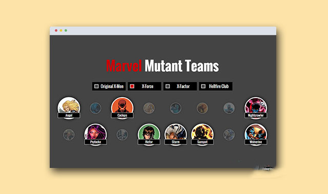 这是一款效果非常酷的纯CSS3炫酷圆形头像图片过滤特效。该特效将图片制作为圆形图片,以网格形式布局,带点击相应的分类按钮后,该类别的图片被放大显示,其它类别的图片被缩小,效果非常的不错。