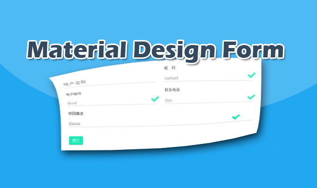 JqueryMaterialFormPlugin是一款基于Bootstrap的MaterialDesign风格的jQuery表单插件。该表单通过自定义样式和jQuery来将Bootstrap的表单修改为扁平风格的表单,并带有浮动标签特效。