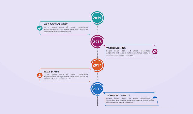 这是一款CSS3超酷响应式垂直时间轴特效。该垂直时间轴特效使用bootstrap网格进行布局,然后通过使用CSS代码来制作各种半圆形和弧线效果。