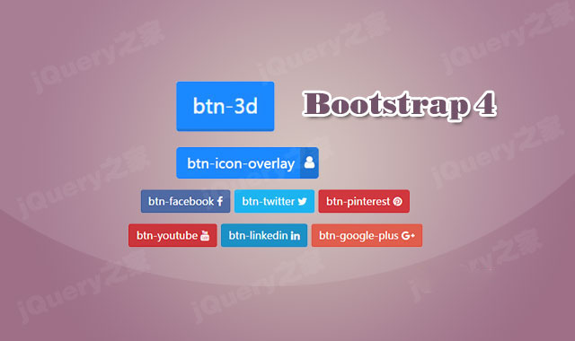 这是一款简单的Bootstrap4按钮样式扩展库。该Bootstrap4按钮样式扩展库通过定义CSS,来为bootstrap4原生按钮添加3D按钮,带图标的按钮,圆角按钮,以及为按钮添加更多的可用颜色,非常实用。
