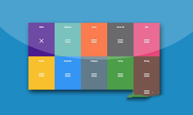 Hamburgers是一款效果超酷的汉堡包图标变形动画特效CSS3动画库。这组汉堡包图标动画包括18种不同的汉堡包变形动画效果,你还可以通过Sass文件来自定义你自己的汉堡包图标变形动画。