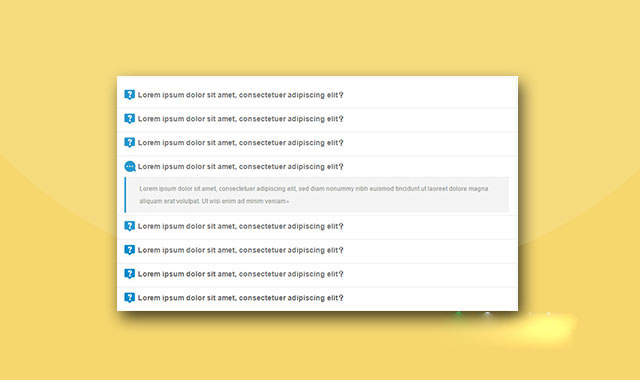 这是一款简单的jqueryFAQ问答列表特效。该FAQ问答列表可以通过点击问题的标题来展开或收缩列表,它使用简单,方便实用。