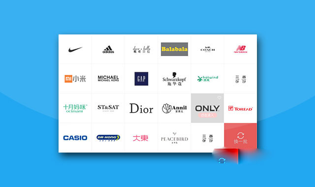 这是一款使用纯js和CSS3来制作的仿天猫商品品牌图片墙换一批动画特效。该特效中,当用户点击了品牌图片墙上右下角的按钮时,所有的品牌图片会水平翻转360度,然后显示另外一批品牌图片。
