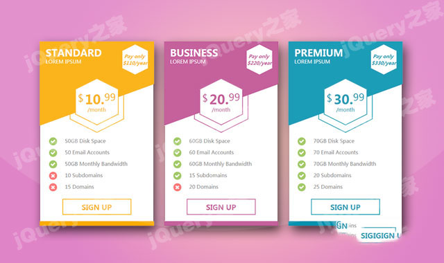 简洁的CSS价格表设计效果