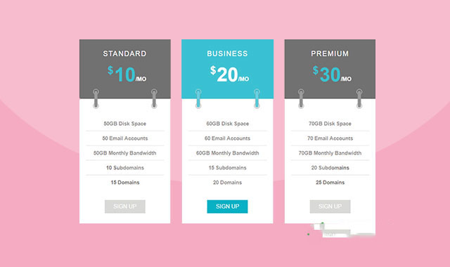 纯css3 价格表 ui设计