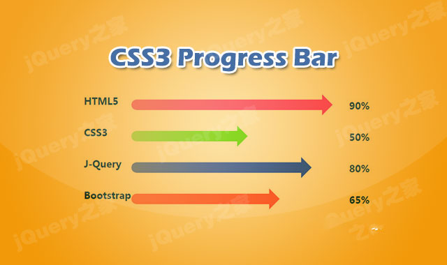 这是一款css3炫酷进度条动画特效。高css3炫酷进度条动画在原生bootstrap进度条的基础上,通过少量的CSS3代码,将进度条美化为箭头样式,并制作动画效果。