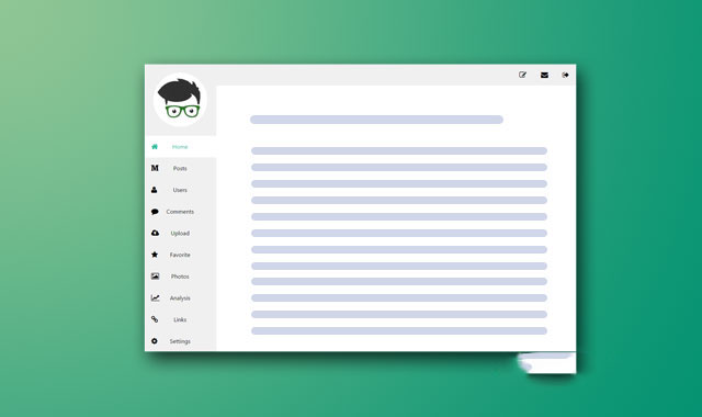 这是一款使用纯CSS3制作的超酷扁平风格后台面板UI设计效果。该后台面板设计风格简洁大方,采用侧边栏TAB来切换各个面板的内容。整个界面使用扁平化设计,非常的时尚。