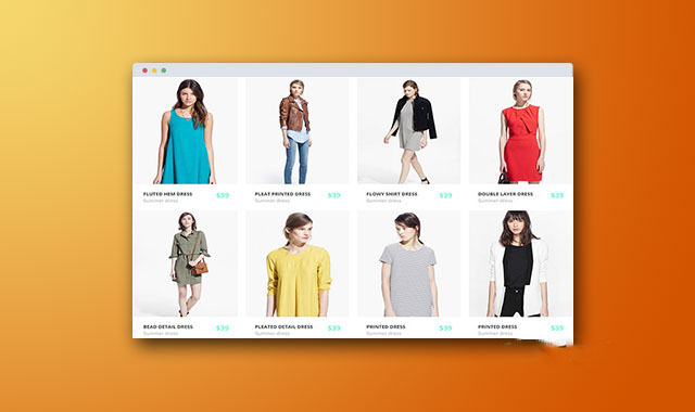 这是一款非常实用的商城网站网格布局和购物车动画UI设计效果。在这款购物UI设计效果中,侧边栏用于对商品进行筛选,所有的商品以网格来布局,每个网格内都可以以幻灯片方式来查看。并且在将商品添加到购物车时有非常炫酷的动画效果。