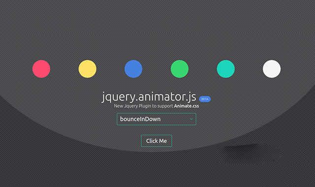 jquery.animator.js是一款基于animate.css的jquery动画插件。Animator插件可以为DOM元素提供各种animate.css中设定的CSS3动画,并额外提供当DOM元素进入视口时触发CSS3动画的方法。